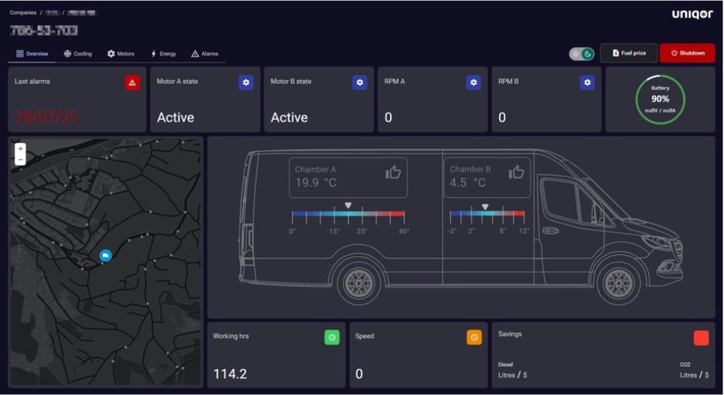 Uniqontrol - פלטפורמת הניהול בענן של Uniqor – מתחברת ישירות לכל רכב המצויד במחשב הבקרה החכם SCC (Smart Cooling Computer) , ומאפשרת למנהלי צי לקבל שליטה מלאה ותובנות מדויקות על ביצועי הקירור – מכל מקום ובכל זמן.