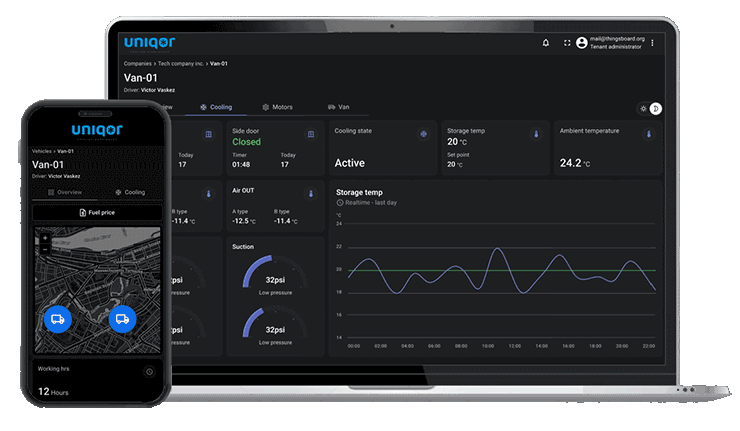 Uniqontrol - פלטפורמת הניהול בענן של Uniqor – מתחברת ישירות לכל רכב המצויד במחשב הבקרה החכם SCC (Smart Cooling Computer) , ומאפשרת למנהלי צי לקבל שליטה מלאה ותובנות מדויקות על ביצועי הקירור – מכל מקום ובכל זמן.